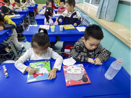 开团现场,各社团课堂活力满满:艺术素养类社团中,孩子们挥毫创作、放声歌唱,感受艺术之美;