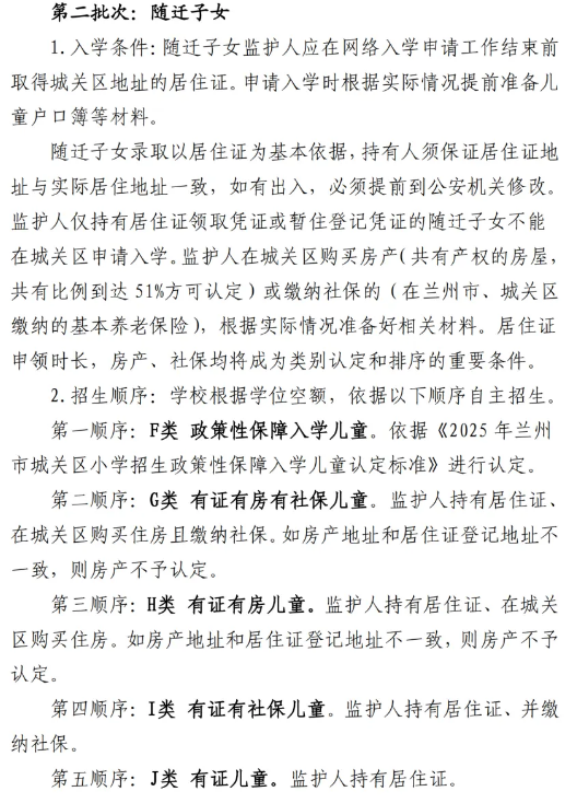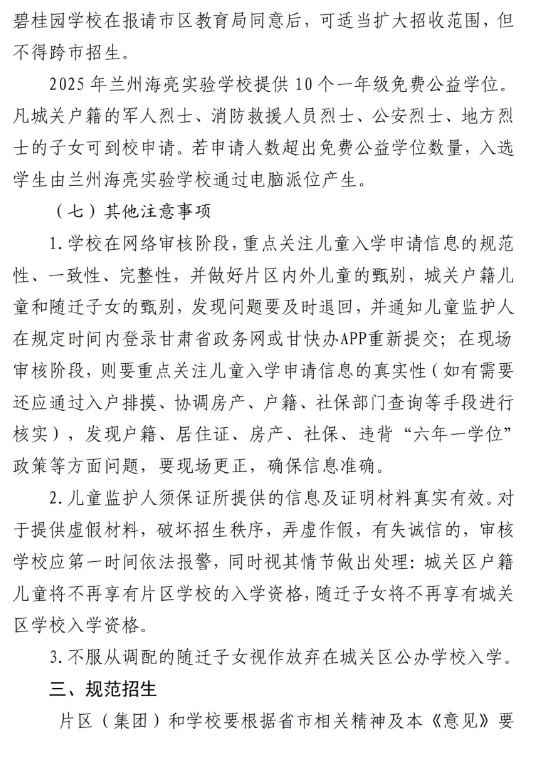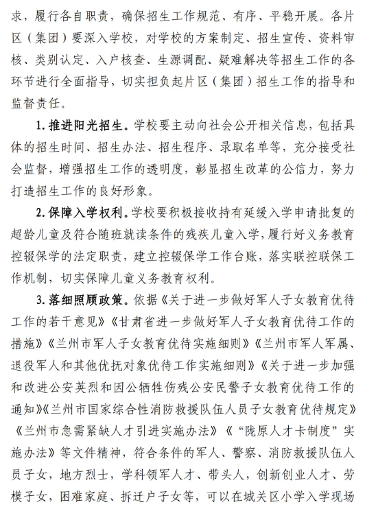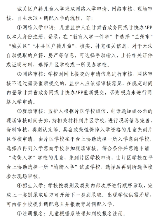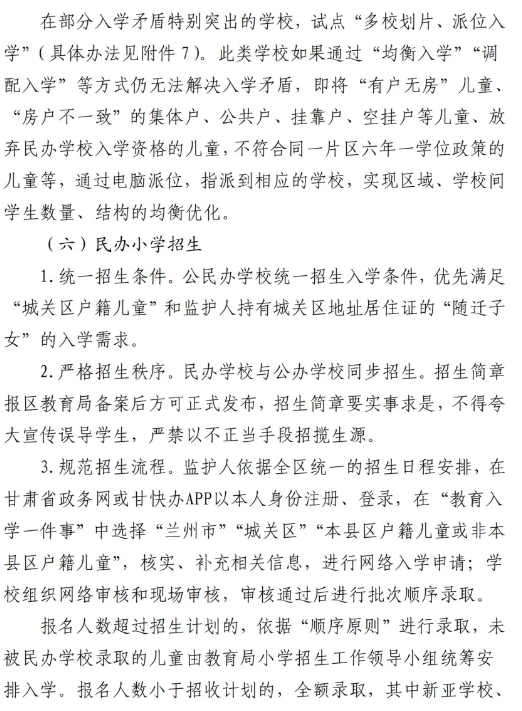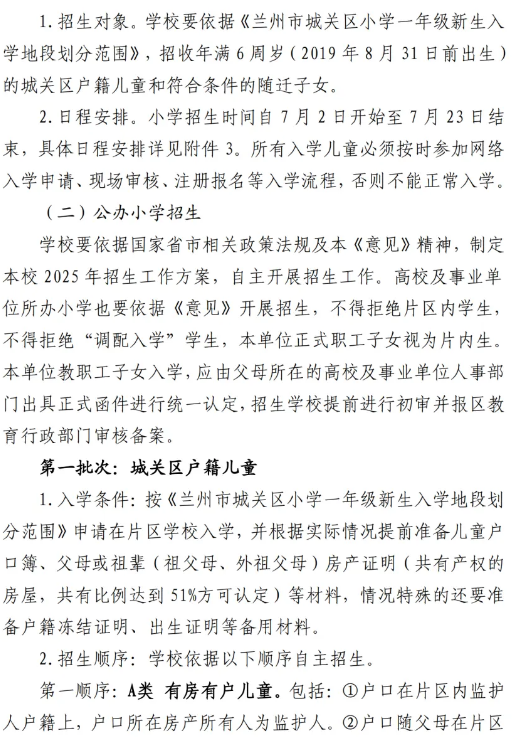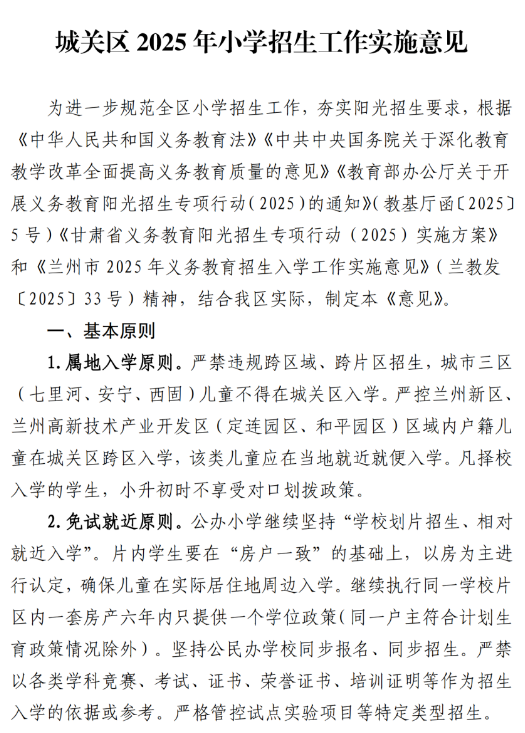 城关区2025年小学招生工作实施意见
