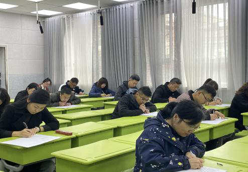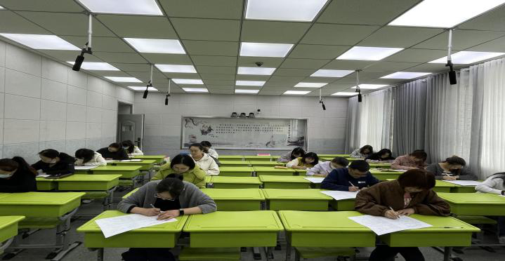 测试现场老师们认真审题、从容作答,将对新课标的理解跃然纸上。教务处李主任负责全程监考,考场上井然有序,充分展现了我校教师良好的精神风貌。