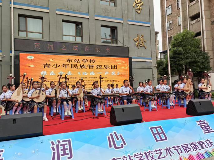 为加快校园文化建设,逐步形成普及国学文化、特色文化、精品文化的校园文化大格局,加强小学生思想品德建设,弘扬优秀民族文化,普及民族音乐教育,东站学校特举办民乐进校园的活动——组建一支一流的东站学校民族管弦乐团,进一步提升兰州市城关区东站学校知名度和品牌效应、发展学生的个性特色,以此推动学生音乐素质的全面发展。在完成音乐课堂教学的同时,不断扩大学生的音乐视野,丰富学生的精神生活,进一步培养、发展学生对民族音乐的兴趣,培养学生的民族自豪感。进一步提升小学生的艺术素养,丰富小学生的家校文化生活。