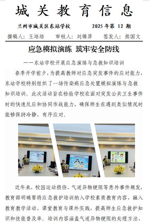 应急模拟演练 筑牢安全防线 ——东站学校开展应急演练与急救知识培训