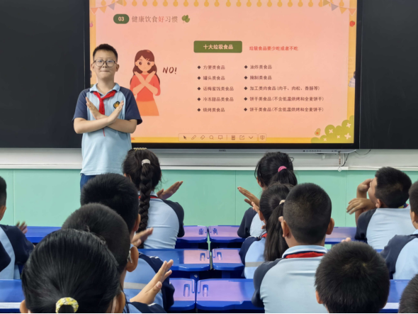 随后,各班级积极开展了食品安全主题班会。班主任老师们通过图文并茂的课件、观看知识宣讲视频等形式,向学生详细讲解了如何选购安全食品、注意饮食卫生等常识,让学生对“五毛零食”、三无产品等垃圾食品的危害有了更深入的认识。同学们踊跃分享自己在生活中遇到的食品安全问题,纷纷表示将从自身做起,拒绝垃圾食品,争做食品安全小卫士。