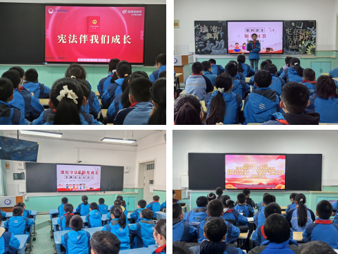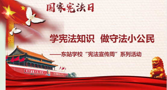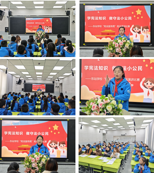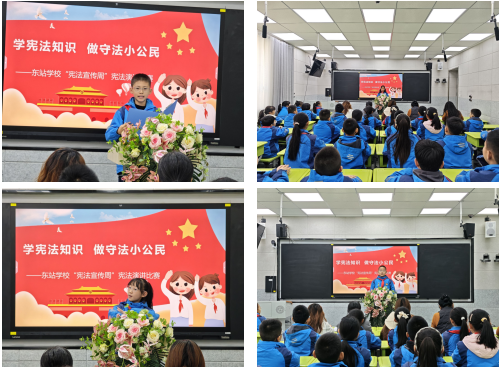 宪法是国家的根本大法,是治国安邦的总章程,关乎国家稳定、社会发展与人民福祉。为全面落实习近平法治思想,夯实青少年法治素养根基,切实推动宪法精神进校园、进课堂、进头脑,东站学校以“宪法宣传周”为契机,开展宪法宣传月系列活动,通过国旗下讲话、主题队会、演讲比赛、知识竞赛等多元形式,在校园内掀起学法知法的热潮,为全校师生奉上了一场丰富的法治教育盛宴。