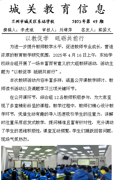 以教促学 砥砺共前行——东站学校开展综合组教研活动