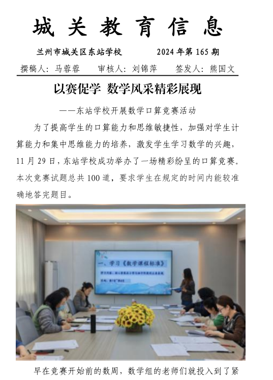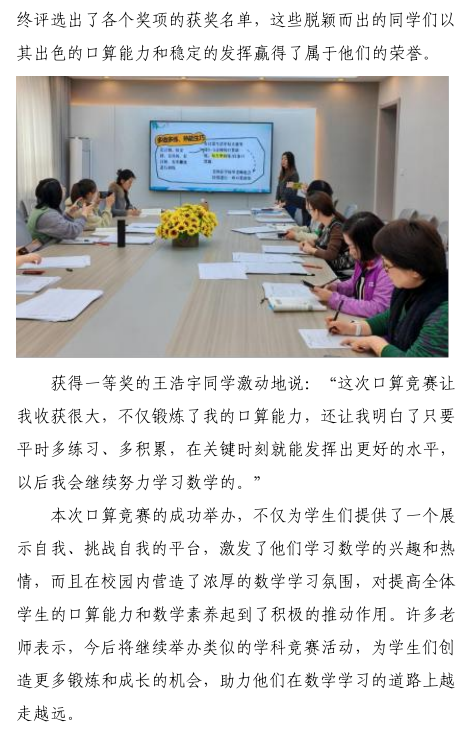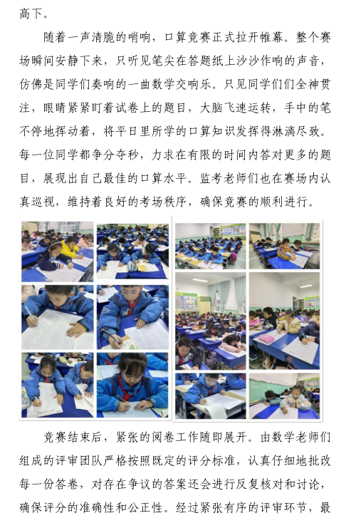 以赛促学 数学风采精彩展现 ——东站学校开展数学口算竞赛活动