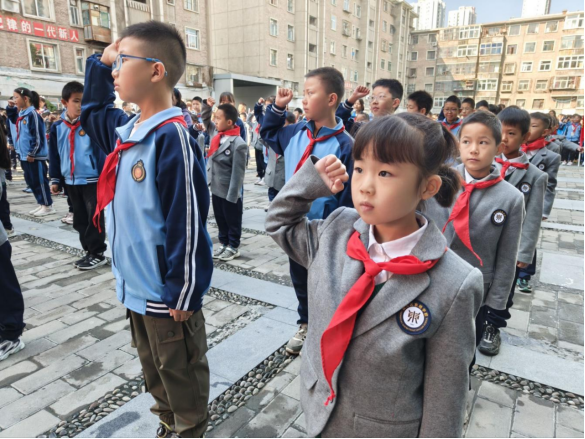 10月13日上午,大队部隆重举行了新队员的入队仪式。在鲜艳的少先队队旗的引领下,少先队员们以饱满的精神齐唱《中国少年先锋队队歌》,他们的歌声中充满了对伟大祖国的热爱以及对光明未来的无限憧憬。