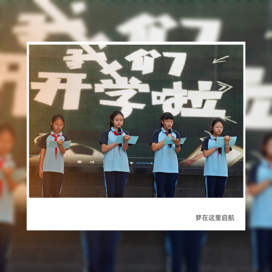 随后,蔡薇、唐子淇、王歆怡、刘润玉四位同学带来诗朗诵《梦在这里启航》。四位同学以饱满的情感,沿着“校园之美”“新学期新希望”“梦想之路”的脉络展开演绎。优美的文字与真挚的情感,让在场师生深刻感受梦想的力量,将典礼氛围推向高潮。